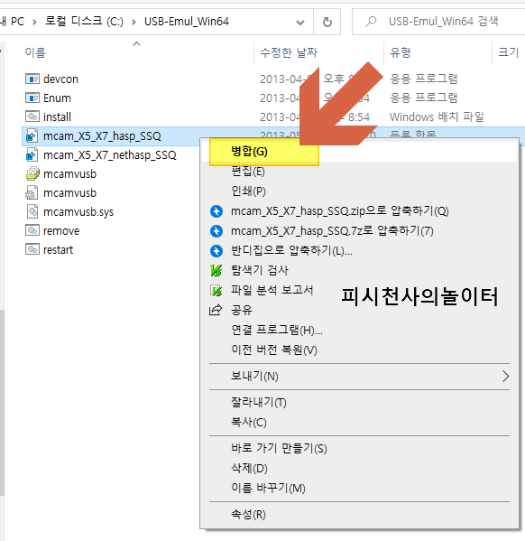 mcam_X5_X7_nethasp_SSQ.reg 병합을 해줍니다.