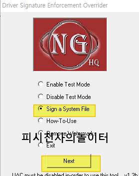 Sigh a system File 체크후 NEXT 클릭 그러면 드라이버 위치를 물어 봅니다.
