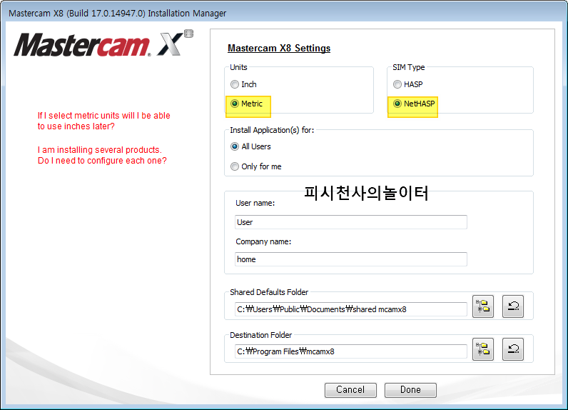 마스터캠 8X 설치는 단순이 시리얼 넘버 입력하는 수준의 한글 설치같은 수준은 아닙니다.